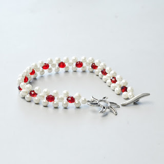 2.テグスで写真のようにガラスビーズを編みます。