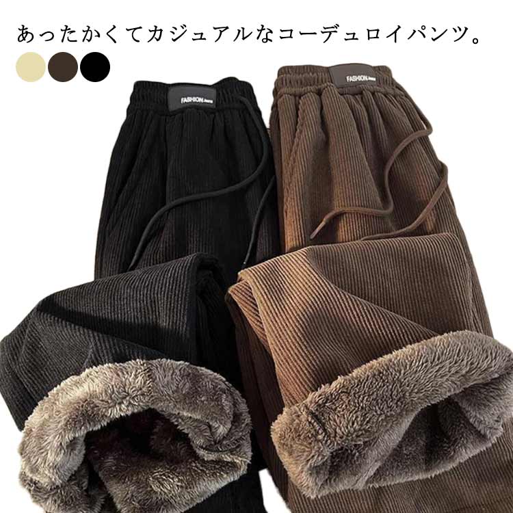 極暖 裏ボア ワイドパンツ レディース コーデュロイ ロングパンツ イージーパンツ S M L XL XXL グレー ブラック ブラウン[ウエストゴム 厚手 トレンド 防寒 暖かい ぬくぬくパンツ ゆったり 保温性 裏起毛 あったかパンツ 楽ちん 体型カバー 秋冬楽天市場