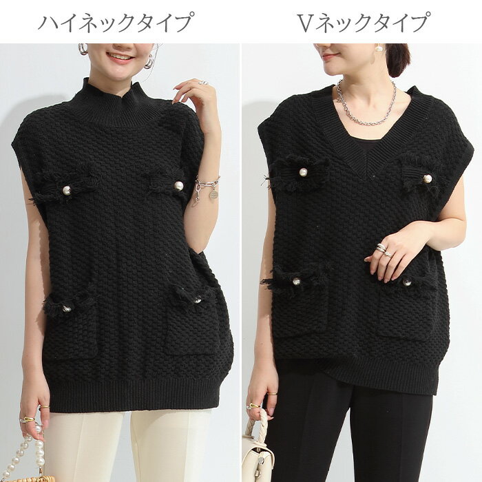 首と裾は切り替えリブ編みになっています。