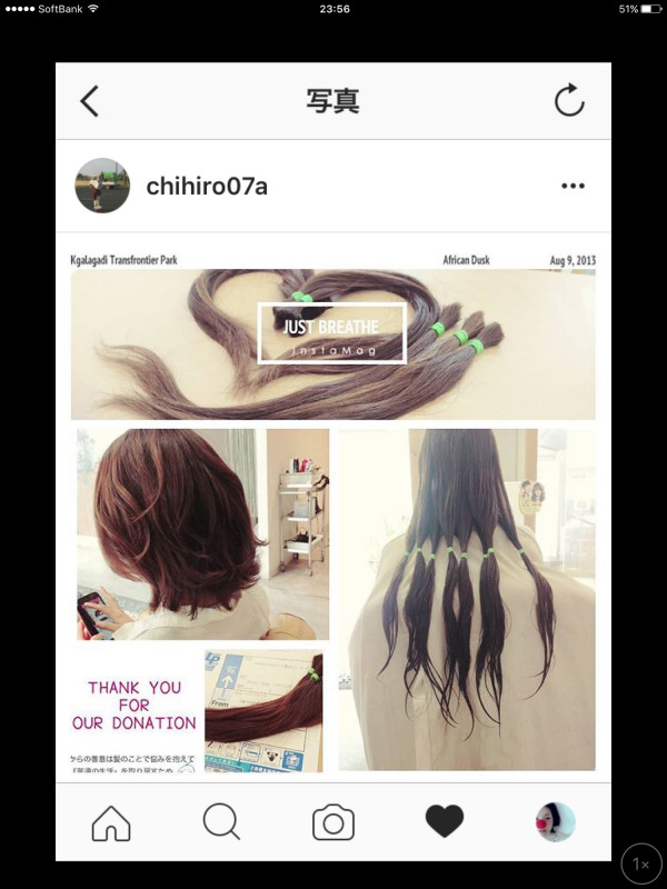 先日、Facebookを見ているとパプスの中山寺店の明石がお客様にお願いして、バッサリカットした40センチの髪の毛を寄付したって記事があったんです。