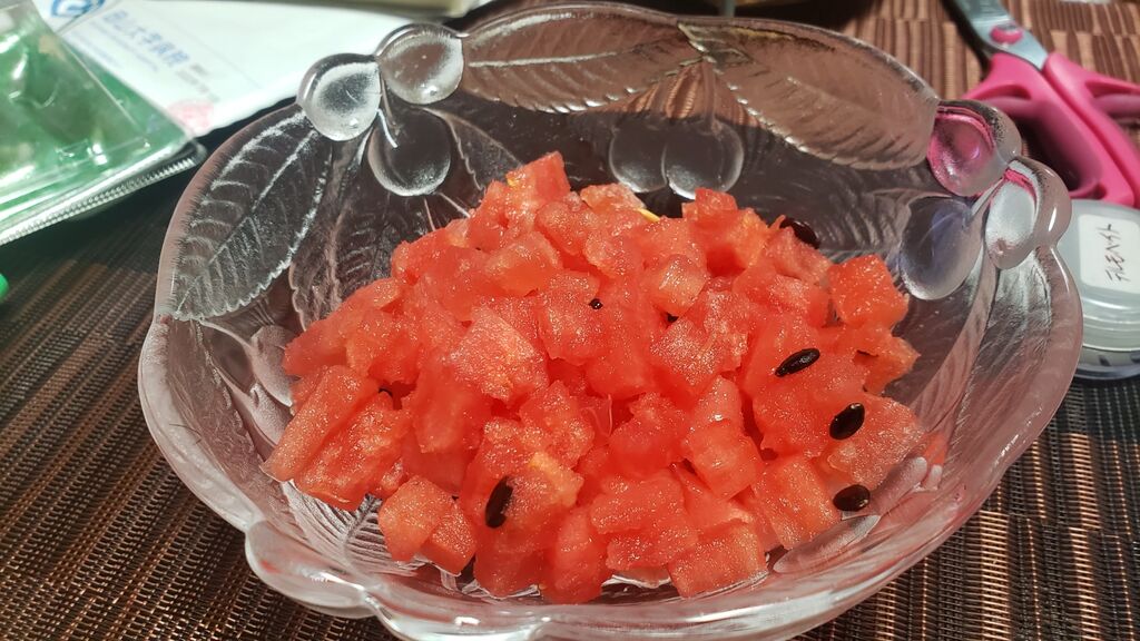 スイカを6~7㎜に切っています。これ以上口が開けられません。