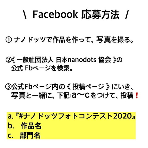 表題「ナノドッツフォトコンテスト2020」写真を添付し下記を記入し送信。