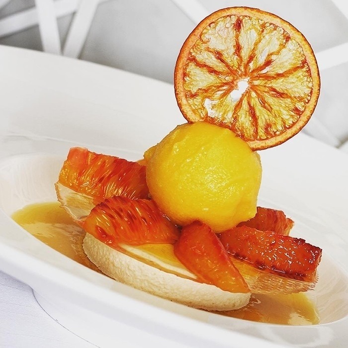 オレンジが夏っぽい♪ オレンジのソルベとムースのデセール