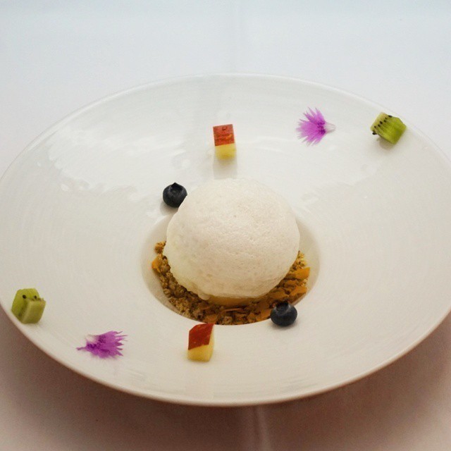 バニラアイスにウフアラネージュを乗せたふんわり食感も楽しめる一皿