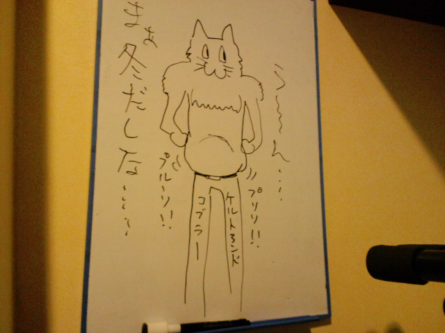 代々木の練習スタジオにジーパン猫出現させた。