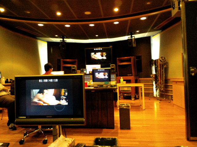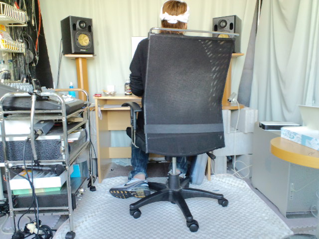 ボーカルブースの外にある電子ピアノを誰かが弾いている。