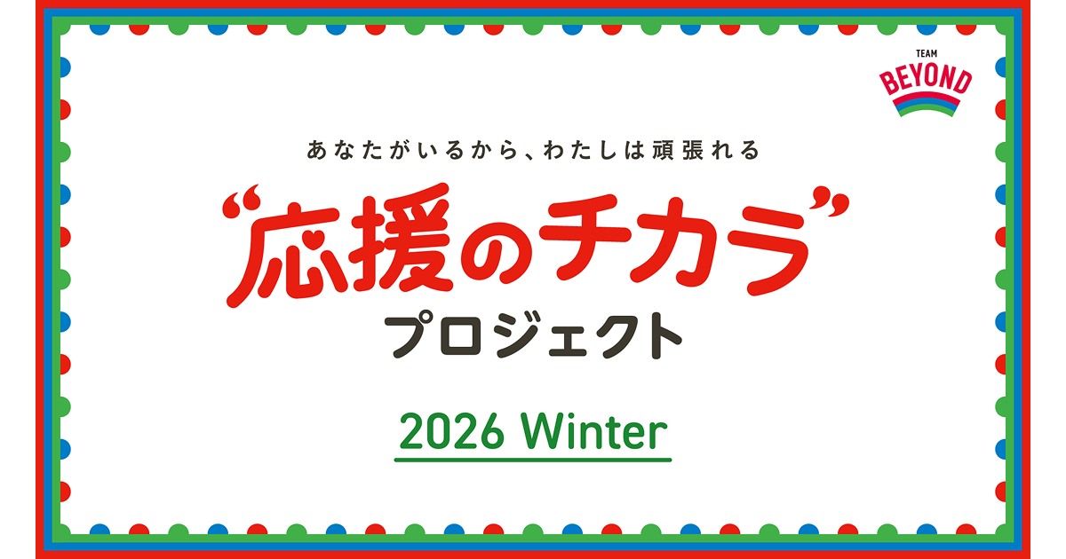 【応募方法】特設サイトにアクセスし、メッセージ(70字まで)、氏名(ニックネーム)(16字まで)を入力してください。応募用特設WEBページ(TEAM BEYOND WEBサイト内)