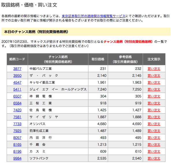 *** マネックスナイターチャンス銘柄 ***