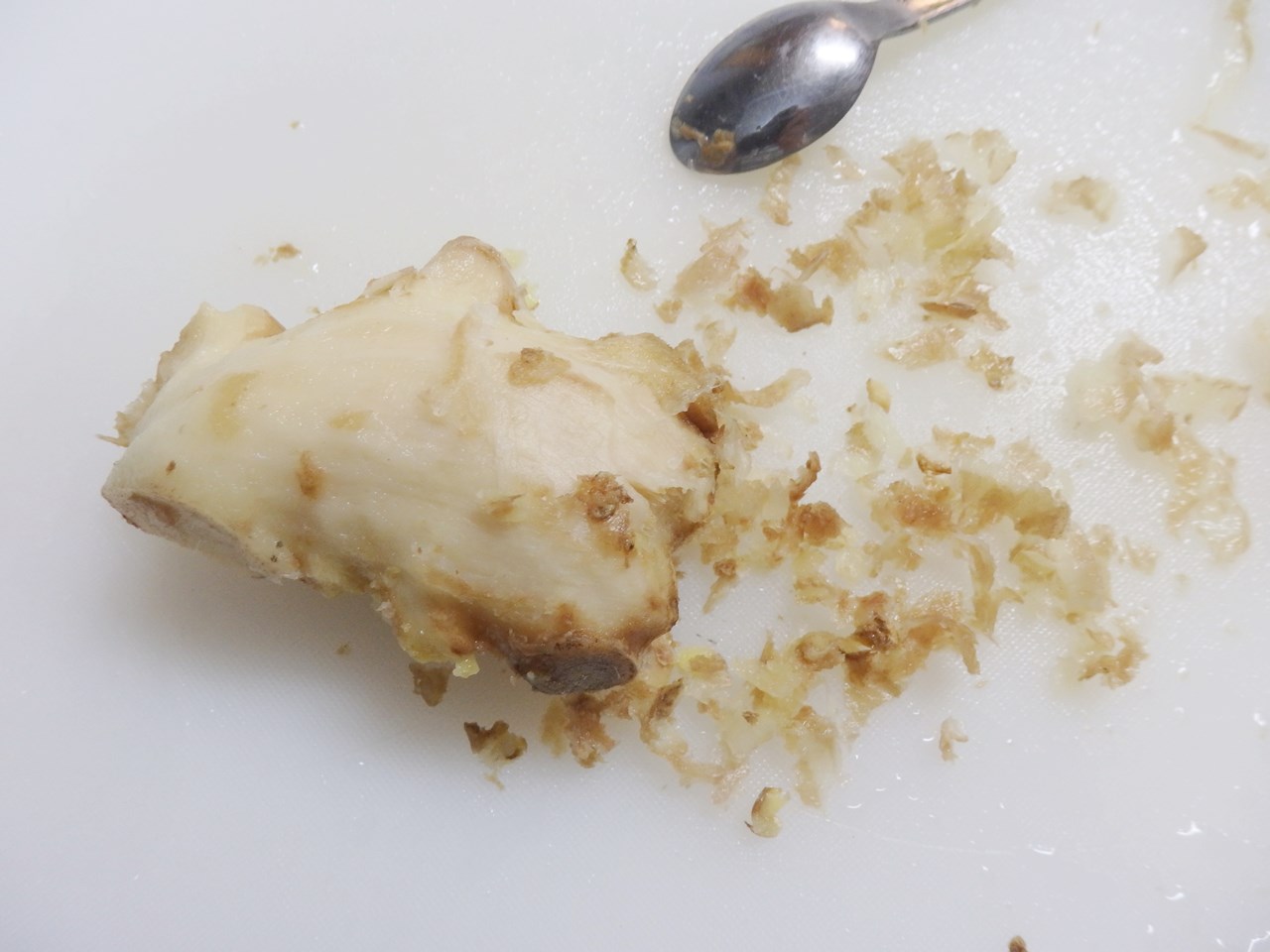 1、生姜を洗い、スプーンなどを使って皮を薄くむく。