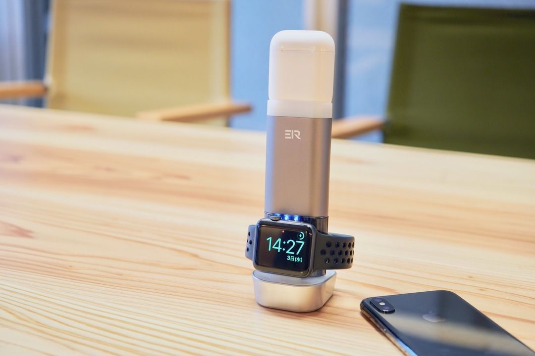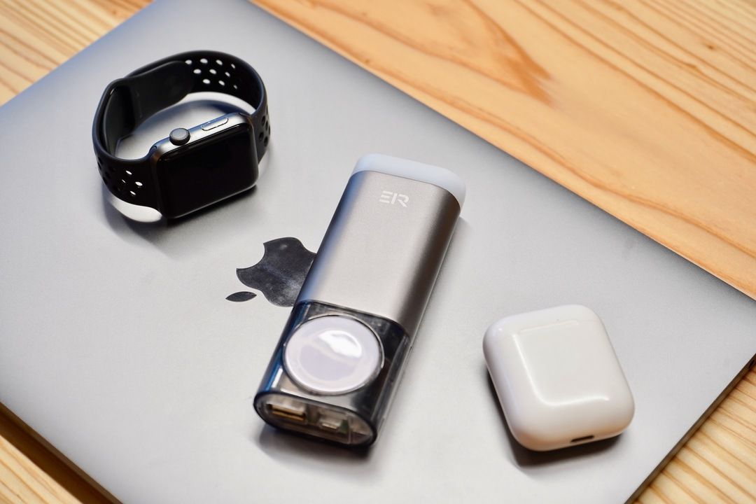 「EIRTOUCH」は、手のひらサイズのモバイルバッテリーに、Apple Watch専用のワイヤレスポートとAirPods専用のライトニングがついたもの。さらに一般的なモバイルバッテリーと同じで、スマホの充電も可能。つまり、Apple Watch、AirPods、iPhoneユーザーに最適化されたモバイルバッテリーというわけです。
