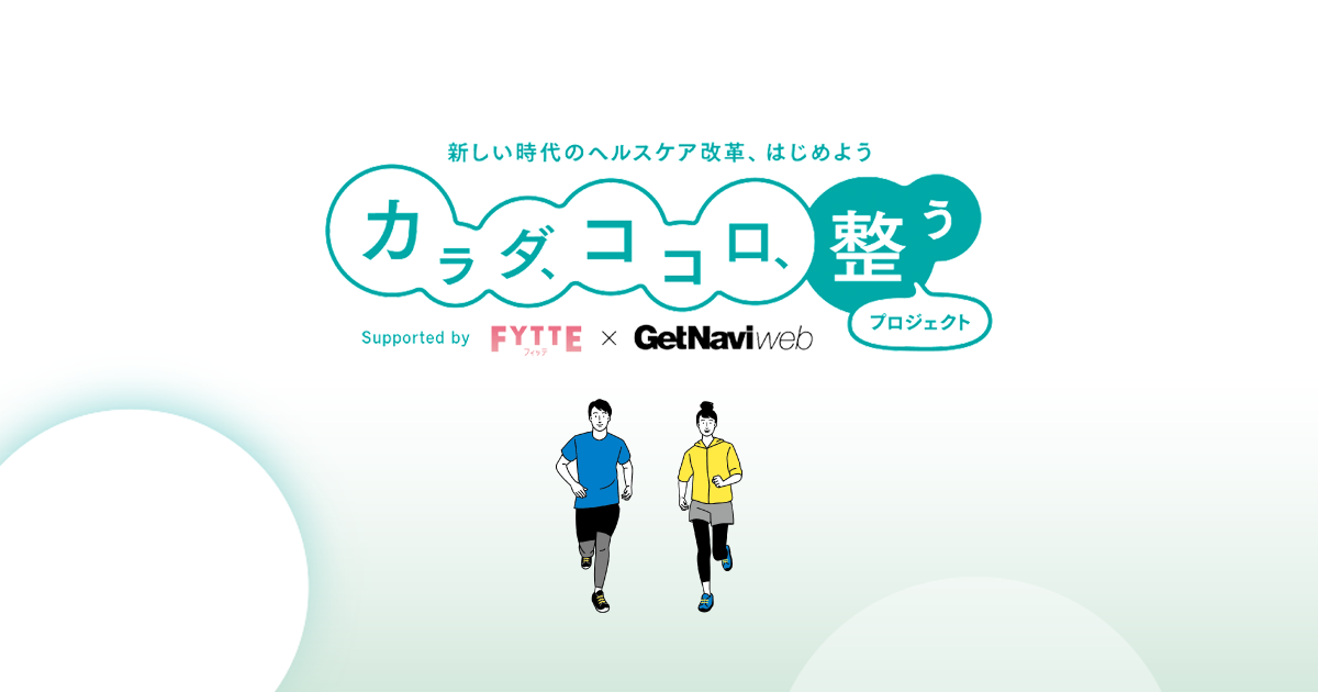 「カラダ、ココロ、整う」プロジェクト 新しい時代のヘルスケア改革、はじめようFYTTE&GetNaviチームは共同企画として「カラダ、ココロ、整う」プロジェクトを発足します。今この新しい時代にマッチした無理がなく、かつ効率的なヘルスケアの方法をアンバサダーや専門家のみなさんと発信していきます。みなさん一緒に、ヘルスケア改革を始めましょう!fytte.jp