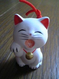 招き猫 この前そごうに行った時、京都なんとか展みたいなのをやってたから八つ橋目当てにうろうろしてたんだけど、置き物やさんの店頭に一匹の子猫が…あたしとママはそのかわいさに一瞬でフォーリンラヴ そして価格は1つ525円 考える間もなく Rママ「これください、2つ」 1つはあたしの新居用だそうです ありがとママ
