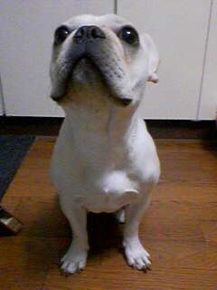 お兄ちゃんを見上げるペコ。