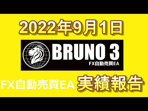 2022年9月1日のブルーノ3の実績は、実利益が +9,341円、日利 0.9%で終了しています。