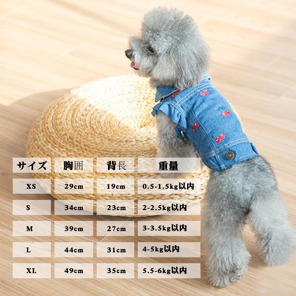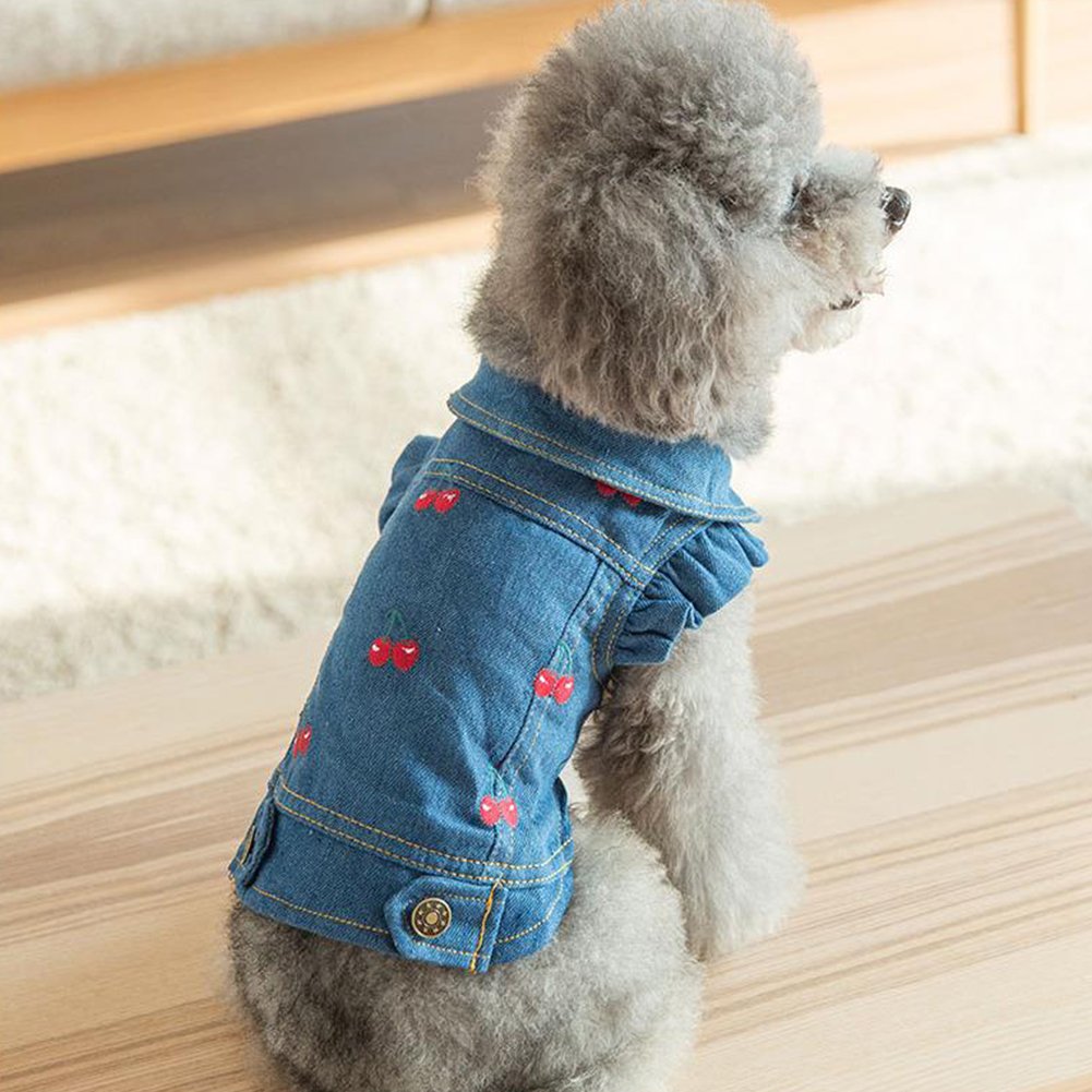 購入リング:【Tona】犬 猫 服 デニム ジャケット 小型犬 中型犬 チェリー 室内 お散歩 春 夏 秋