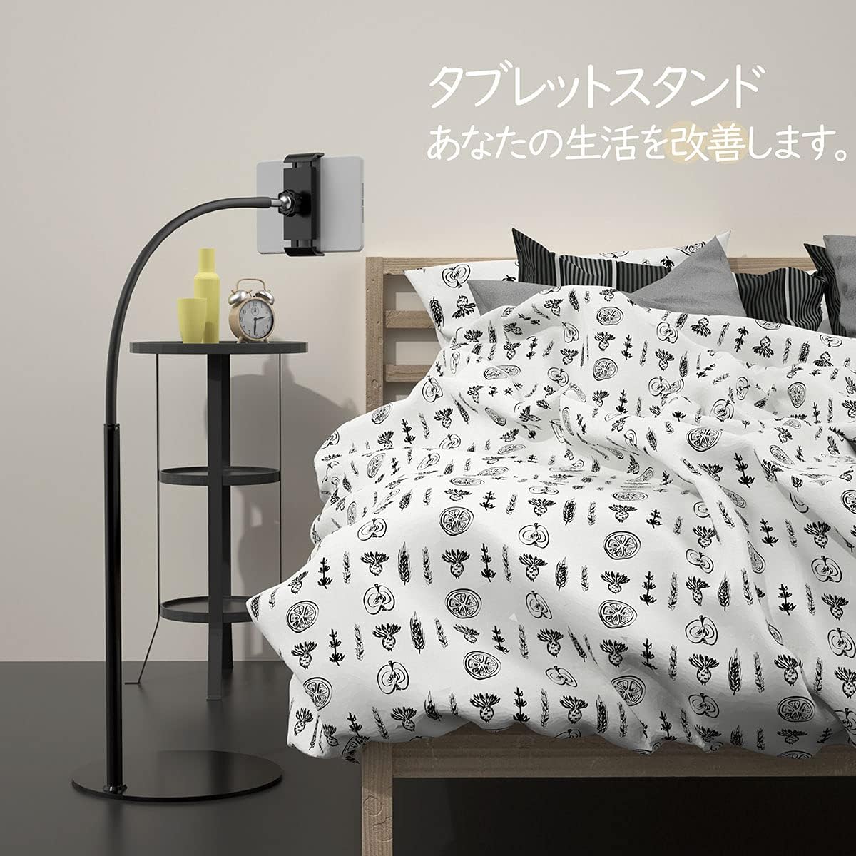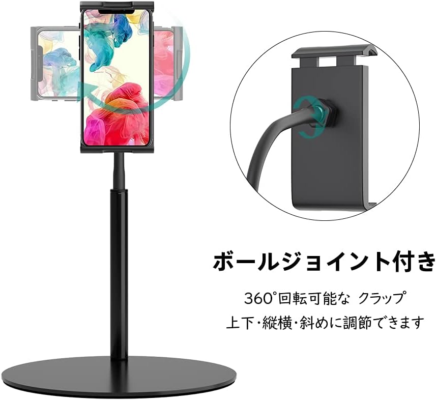 タブレット スタンド 卓上 揺れず頑丈な金属製台座 360度回転可能 スマホホルダー フレキシブルアームスタンド 横/縱/仰向け 4-11インチ タブレットPC、スマホ共通