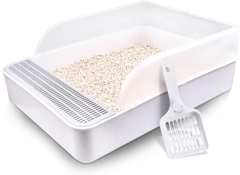 【TONAPEETO】猫トイレ 猫用トイレ本体 オープンタイプ ハーフカバー スコップ付き 大きい猫 大きいトイレ 飛び散り防止カバー付き