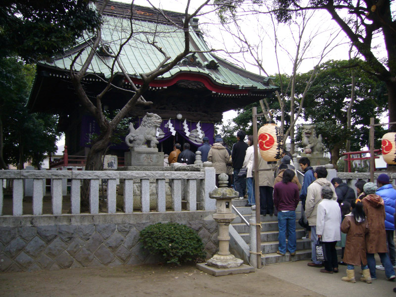 近くの熊野神社まで足を伸ばして初詣。長い列を並んで、お参り。