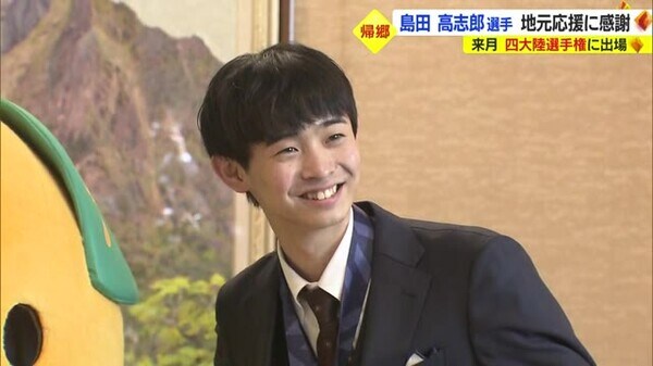 島田高志郎選手が1月5日に愛媛県庁で中村時広知事を表敬訪問したことが複数のメディアから報道されました。