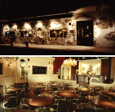 ここのボエムは地下の池?が売りですよね。今回は混んでいて席は一階でした。