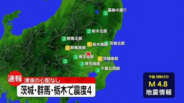 筑西市、宇都宮市、足利市などで震度4 津波の心配なし気象庁によりますと5日午後6時42分ごろ、地震がありました。この地震による津波の心配はありません。震度4を観測したのは、筑西市、宇都宮市、足利市、佐野市、鹿沼市、下野市、高根沢町、桐生市、大泉町、震度3を観測したのは、白河市、須賀川市など。news.ntv.co.jp