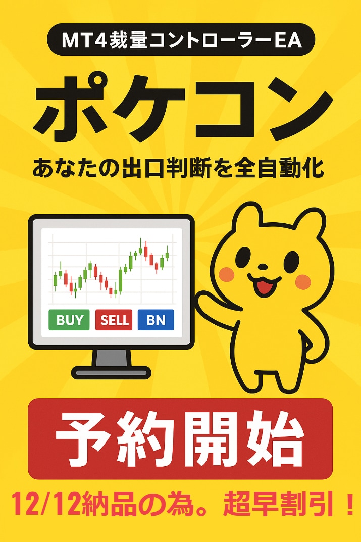 衝撃!あなたの出口戦略を自動化するEAできます 手法はそのまま。出口だけ《ポケコンEA》が監視して処理します | ココナラ※納品は12/12になります※※それまでの早割引き特別価格です♪「あなた専用の出口EA」誕生!FXの入口エントリ―=あなたの裁量。出口のめんどいエグジット作業だ...coconala.com