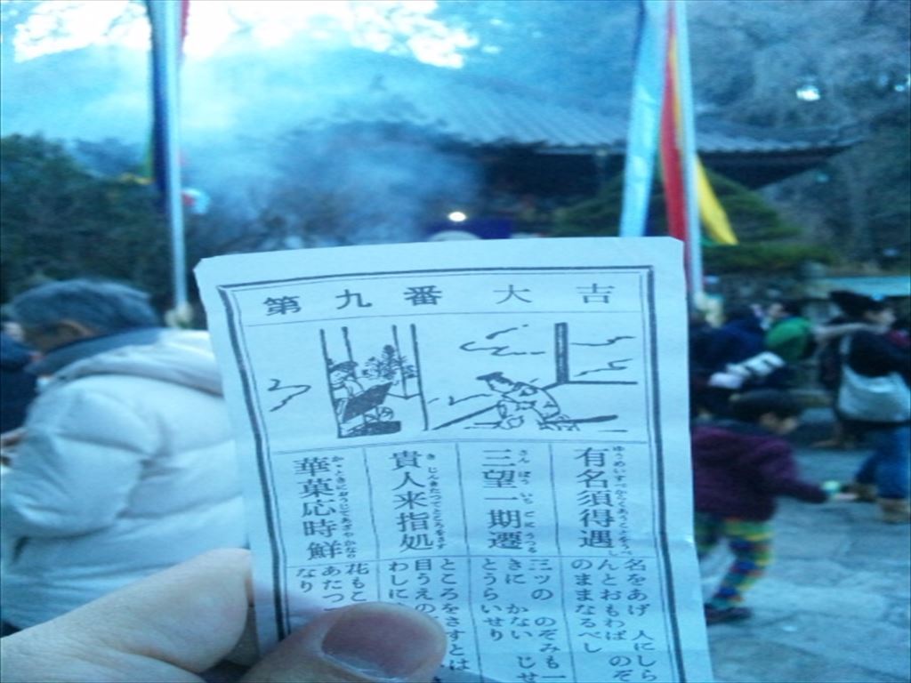 ↑厄払い後のおみくじ 「大吉」!去年は「凶」だったので、お払い成功?
