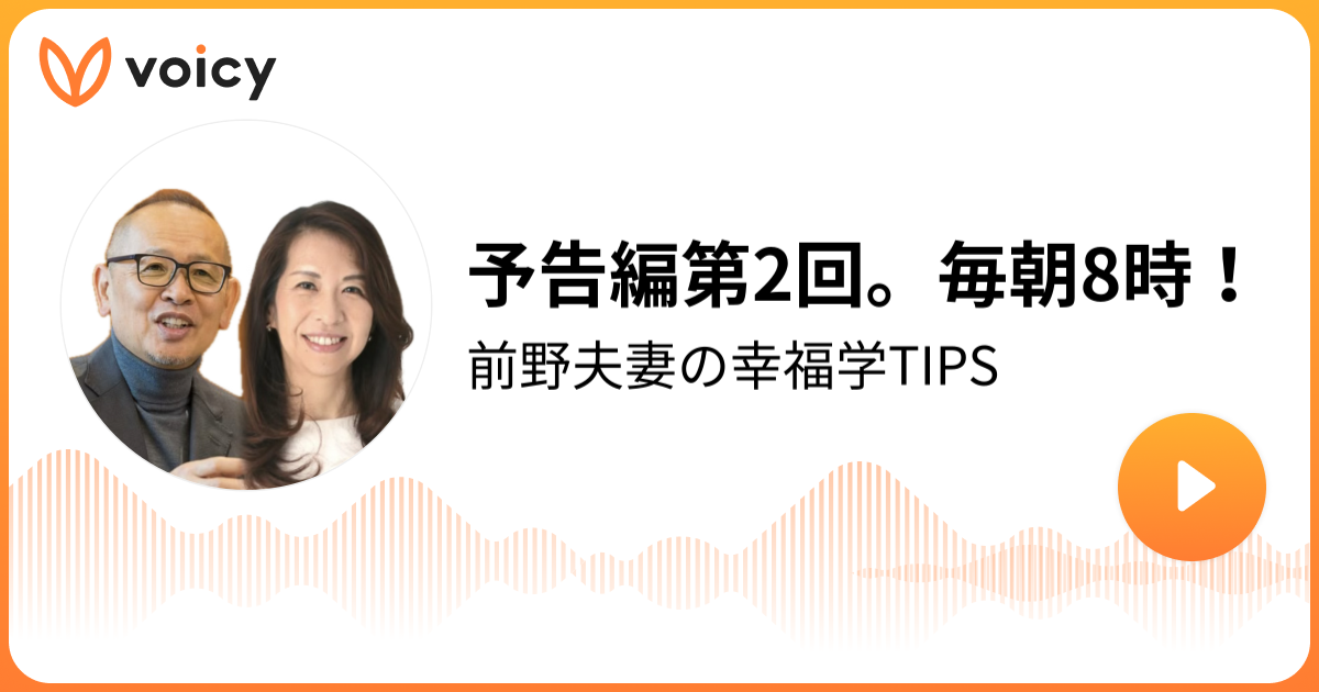 まだまた! なんと前野先生が奥様と一緒にVoicyも始めるみたい!ちなみに、pingdao的には、、前野先生の声だけで癒されるので、めちゃ楽しみ。