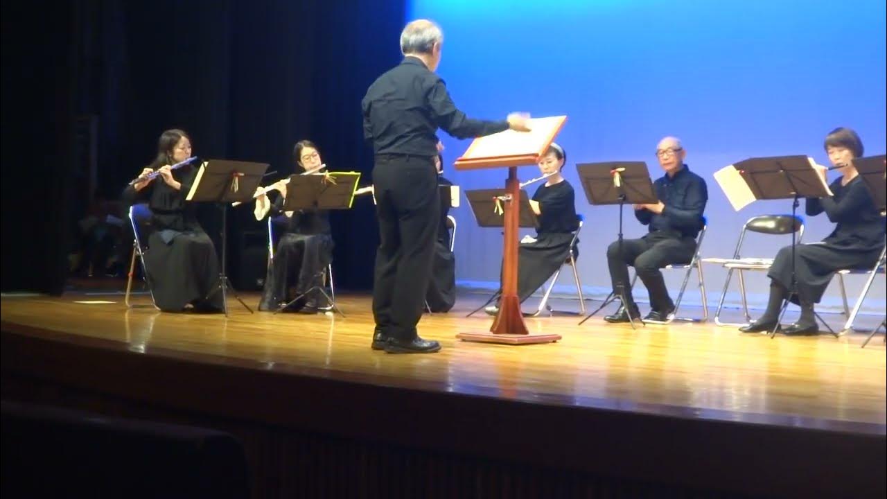演奏したのは…、フルートオーケストラのために作曲された『ブルートレイン』です。