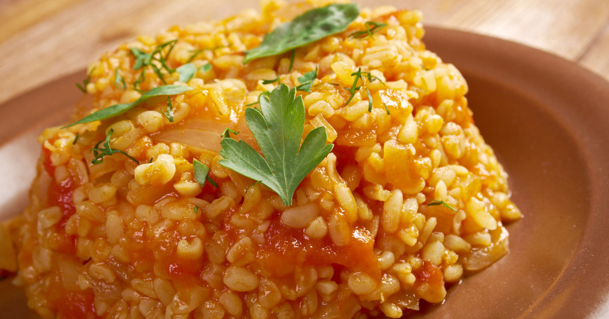 昼 ブルグルのピラフ(たまねぎ、エリンギ
