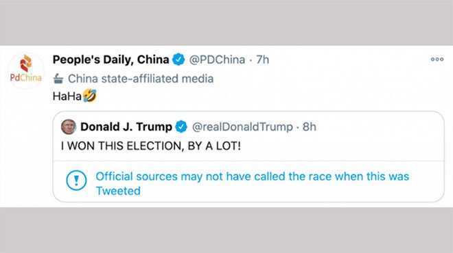 中国共産党の機関メディア「人民日報」の公式ツイッターアカウントが