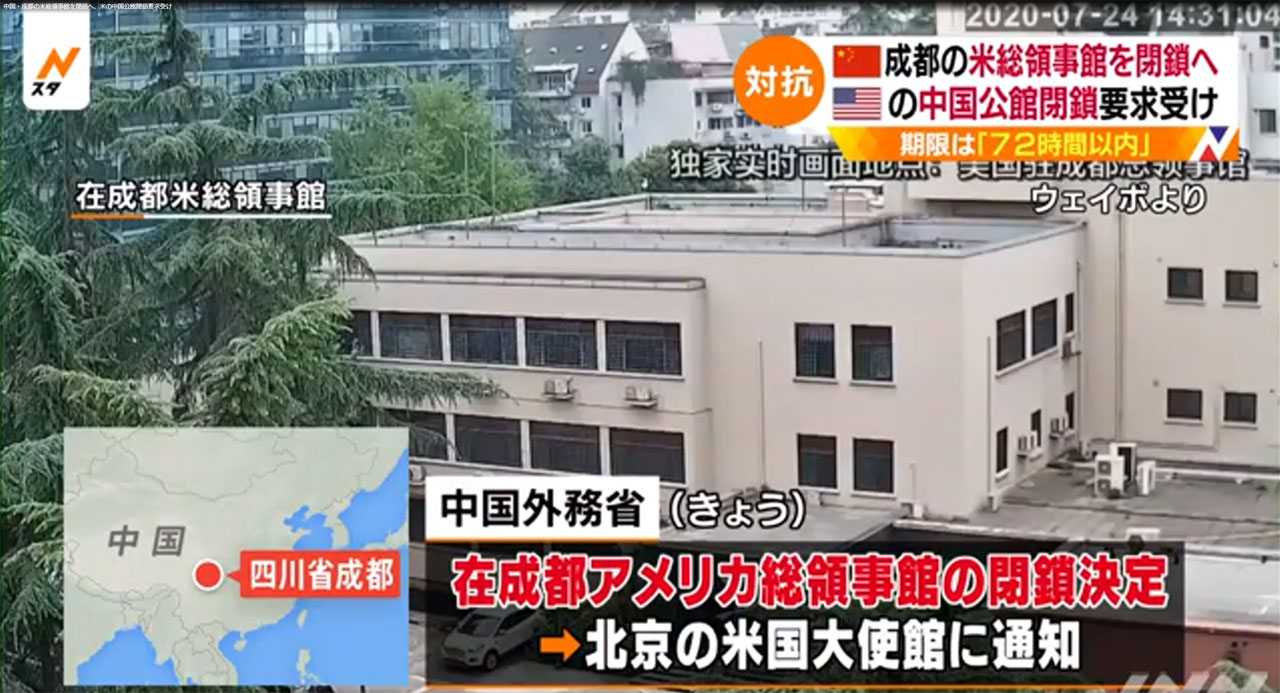 米国は中国の北京大使館を業務停止にして閉鎖すると発表し