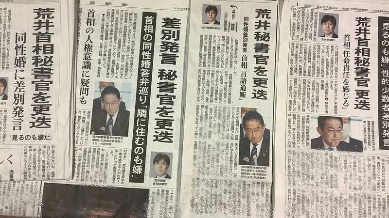 首相秘書官が同性婚を巡る性的少数者への差別発言で