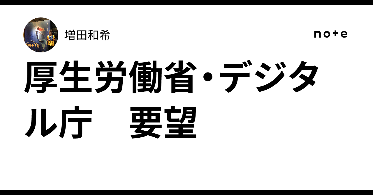 noteへの投稿(共有)https://note.com/pipokazuki0725/n/n7cbdbf355753厚生労働省・デジタル庁 要望|増田和希介護福祉士 増田和希です。 厚生労働省及びデジタル庁に要望を送付しました。 各種福祉医療制度のオンライン資格確認についての要望。 平素より、障害福祉施策の推進につきまして格別のご尽力を賜り、厚く御礼申し上げます。 専門職もマイナ保険証での資格確認の呼びかけを行うなどしてマイナ保険証の利用を推奨しているところですが、自立支援医療制度や心身障害者医療費助成制度…note.com