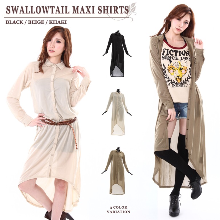 ◆マキシシャツワンピース 長袖 エンビヘム DK020N