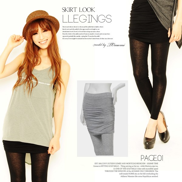 くしゅっとしたシャーリングデザインが可愛い★スカート風レギンスが入荷しました☆ゆるシルエットのTシャツやチュニックに合わせてスカートをチラ見せするのも◎薄手typeの若干透け感ありなレギンスが美脚効果をさらにUPしてくれます☆スカートとレギンスが一体になって着まわしバツグンな一押しボトムです♪販売価格:2,980円