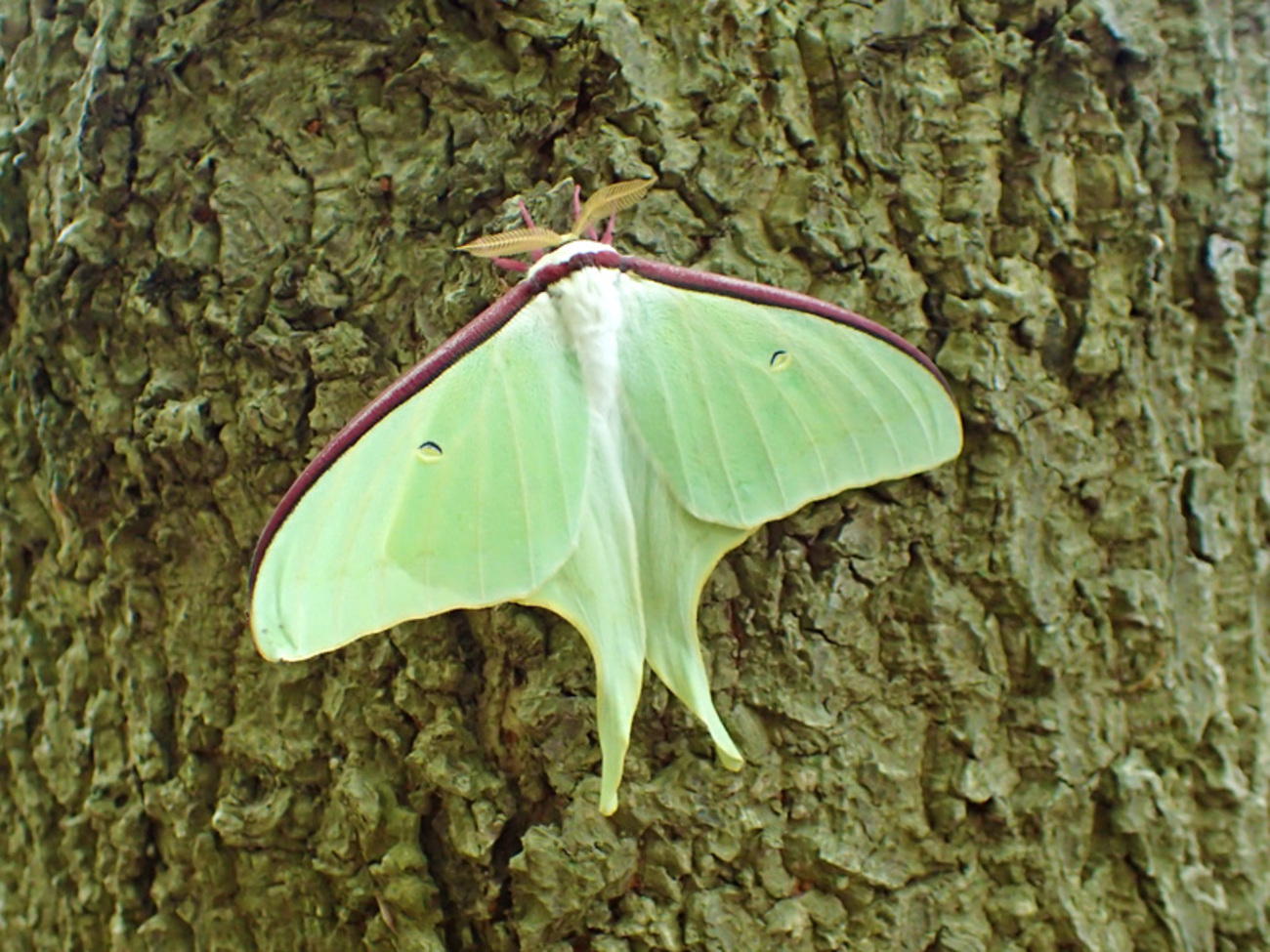 オオミズアオ、とても美しい蛾で日本中どこにでもいる蛾らしいんだけど、都心では絶滅危惧種とか言われていて鳥取帰省で探そうと密かに思っていたんだが…