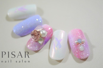 そこに女の子らしさをパーツと偏光ジェルで表現してみました。