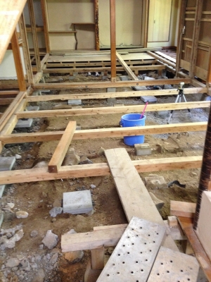 本日は大工さんをお呼びして、痛んだ土台の入替と束の撤去