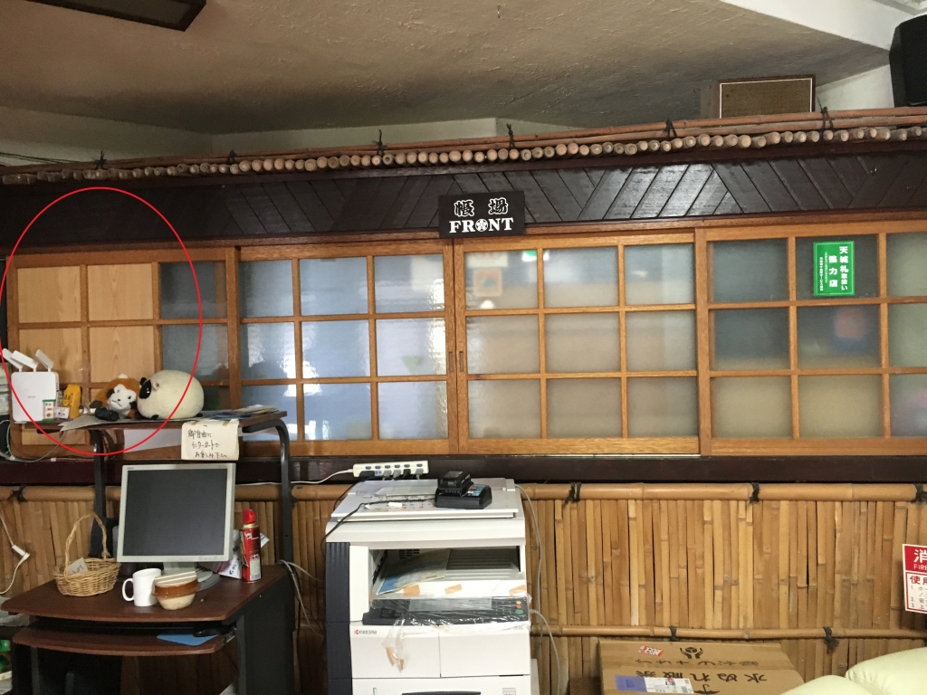 フロントの近くにある、Wifiルーター裏の