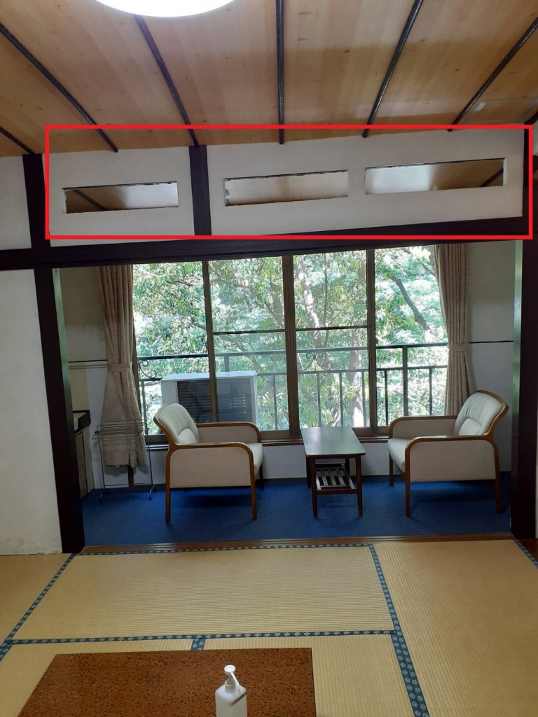 2014年の改装前は本間から見て右側の柱(赤枠部分)が