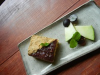 もっちりとしたきな粉スポンジに、自家製あんこを使った生地を流し込んだ、和風のケーキです。