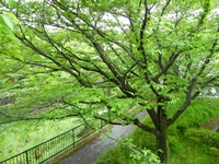 プレーンの裏の桜並木はすっかり新緑のカーテンです。