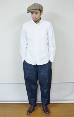 ワイドなシルエットですが、すそに向かってテーパードが効いていますので、見た目以上の合わせやすさで、様々なスタイルで