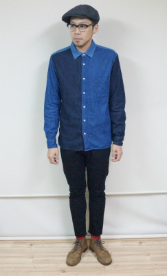経糸は硫化ブラックを使用し、インディゴとは違う全体的に色あせていく色落ちが楽しめます!!
