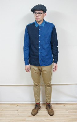 ベージュは、 紡績前に何度も櫛で研ぎ、繊維を揃えてから糸にしたチノ生地です!!