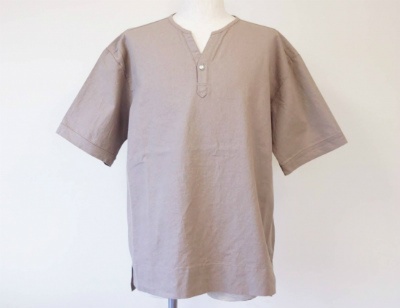 AUDIENCE(オーディエンス) ソフトリネンコットンC/Nスキッパーコンチョ釦5/Sシャツ グレージュ