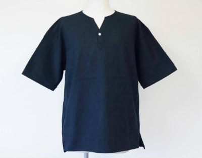 AUDIENCE(オーディエンス) ソフトリネンコットンC/Nスキッパーコンチョ釦5/Sシャツ ブラック