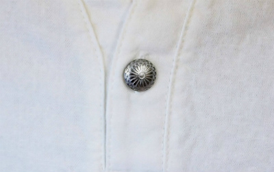 トレンド感のあるスッキパーシャツにワンポイントのコンチョ釦が相性抜群です!!