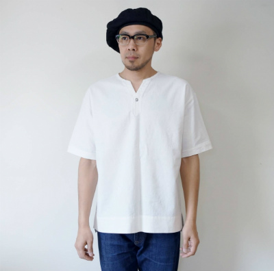 AUDIENCE(オーディエンス) ソフトリネンコットンC/Nスキッパーコンチョ釦5/Sシャツ ホワイト